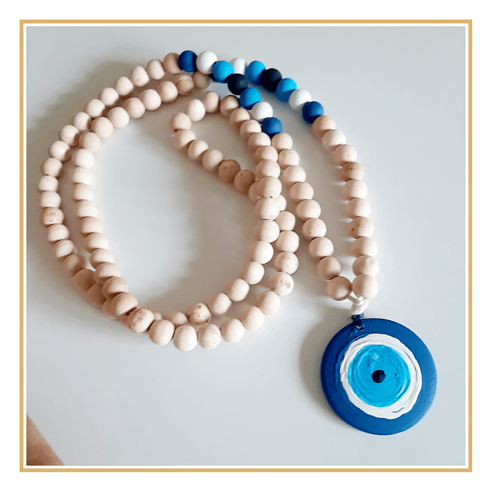 Japamala com Contas de Madeira - Olho Grego -Turco