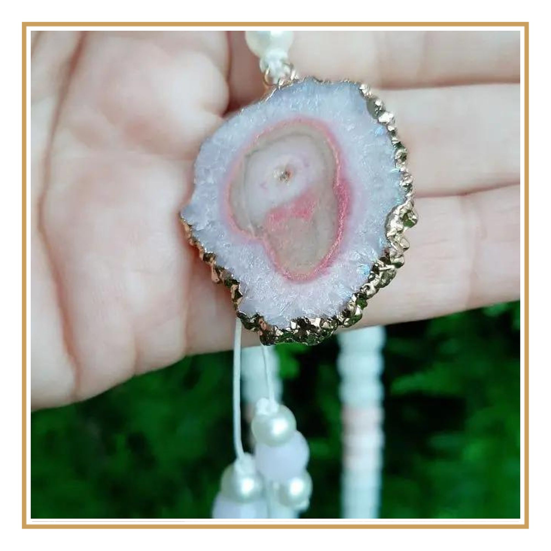 Sinergias do Japamala: contas de quartzo branco + contas de quartzo rosa + drusa + amor + good vibes !
