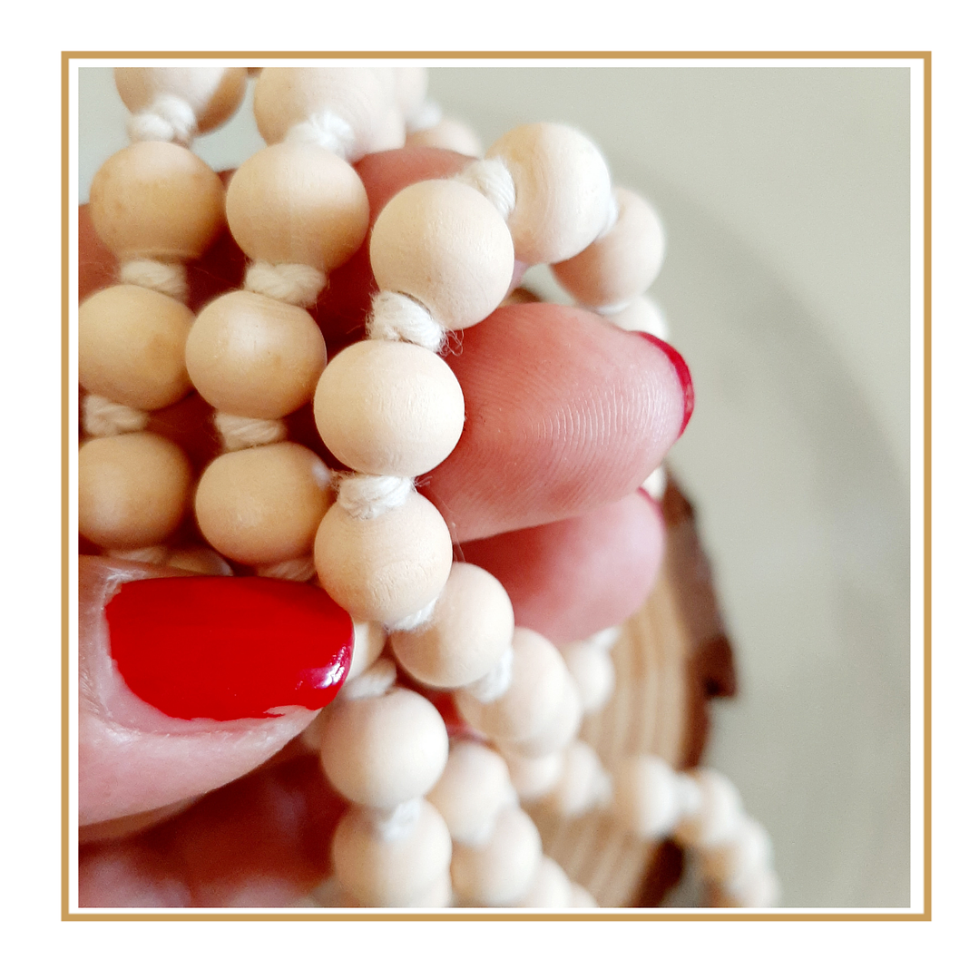 Japamala com contas de madeira - Terço Budista com Meru pintado à mão