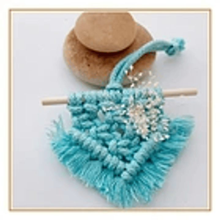 Este Mini painel em macramé é adequado para pendurar no carro ou portas interiores da casa. Pode utilizar simplesmente com efeito decorativo ou aromatizador: basta borrifar a essência, colónia ou perfume sobre o mini-painel.